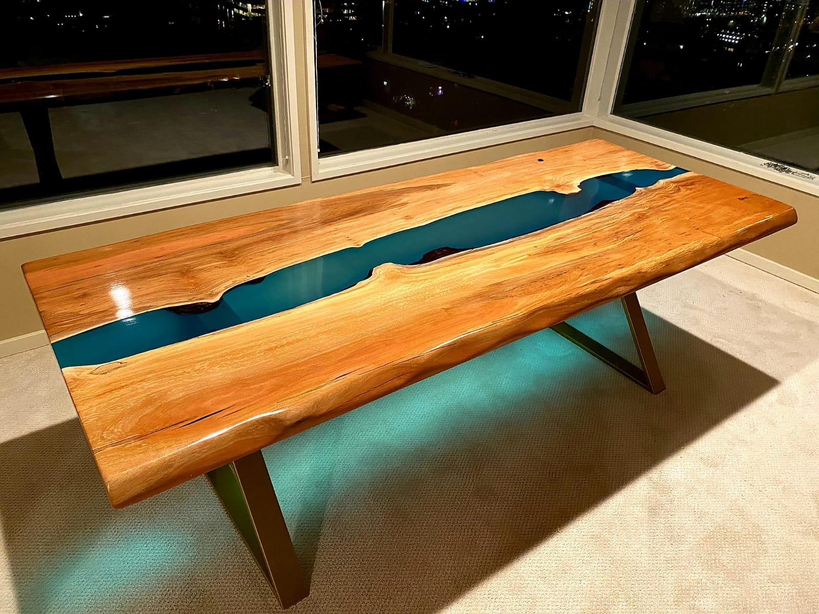 - Custom Just for You: Want a table that showcases your family heirlooms or your business’s flair? Whether it’s eyeglasses in epoxy for an optician’s office or a tech-themed table filled with gadgets, we’ve got you covered.