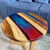The Aurora Glow Round Table is a mesmerizing blend of natural wood and vibrant, colorful epoxy that captures the essence of the northern lights. Its striking design features shimmering hues of blue and red epoxy, creating a unique and artistic centerpiece for any living space. Supported by a sturdy wooden base, this handcrafted table combines functionality with modern elegance. Perfect for living rooms or creative spaces, the Aurora Glow Round Table transforms your decor into a masterpiece of art and design.