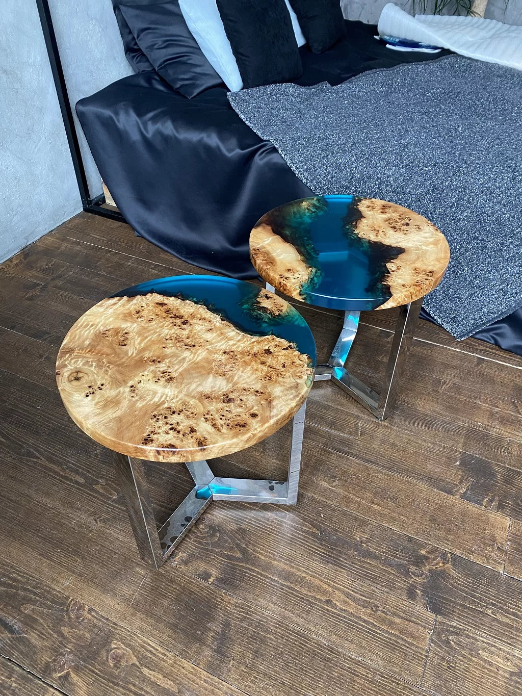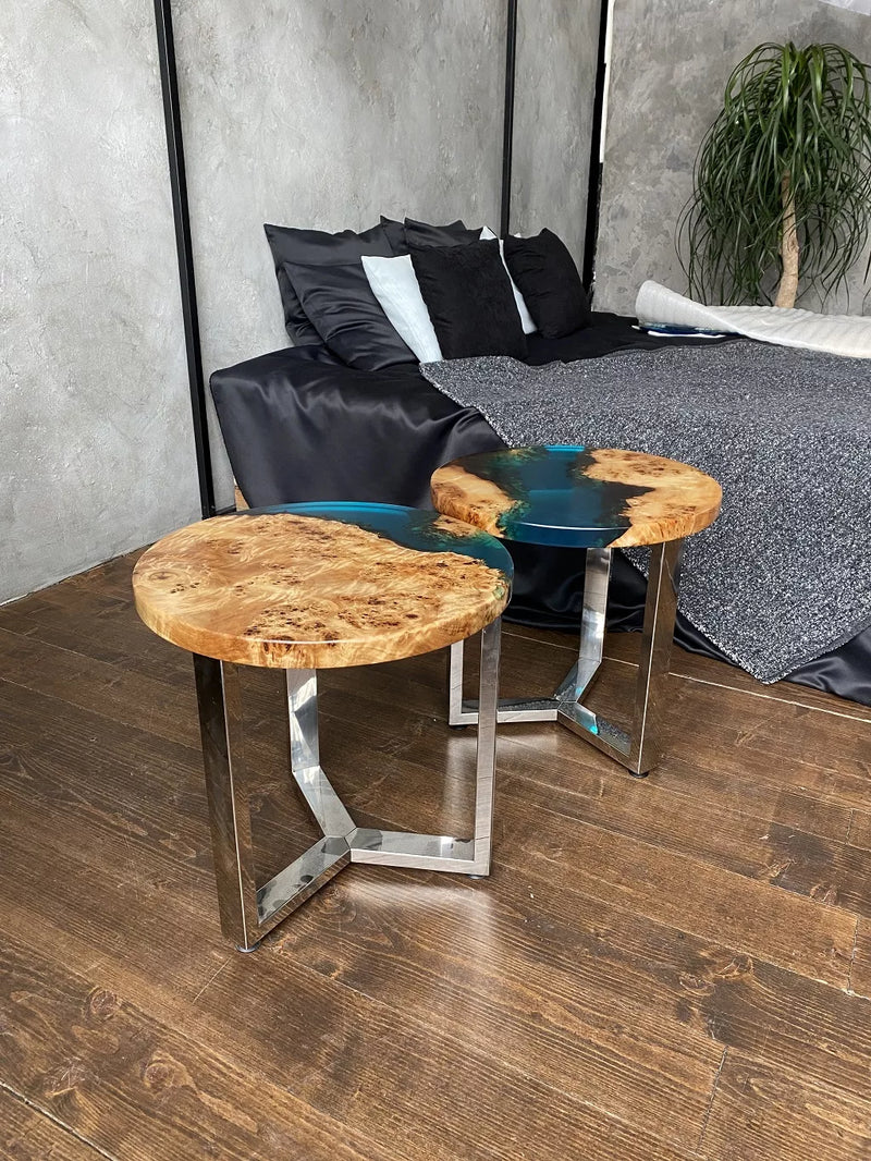 The Azure Poplar Round Set is a captivating blend of nature and artistry, crafted from high-quality poplar wood and infused with vibrant blue resin. The unique wood grain patterns are accentuated by the deep azure hues, creating a visually stunning centerpiece for any room. With a smooth, polished finish and sturdy metal legs, this set is perfect for adding elegance to living rooms, bedrooms, or office spaces. Ideal for those who appreciate the fusion of natural beauty and modern design.