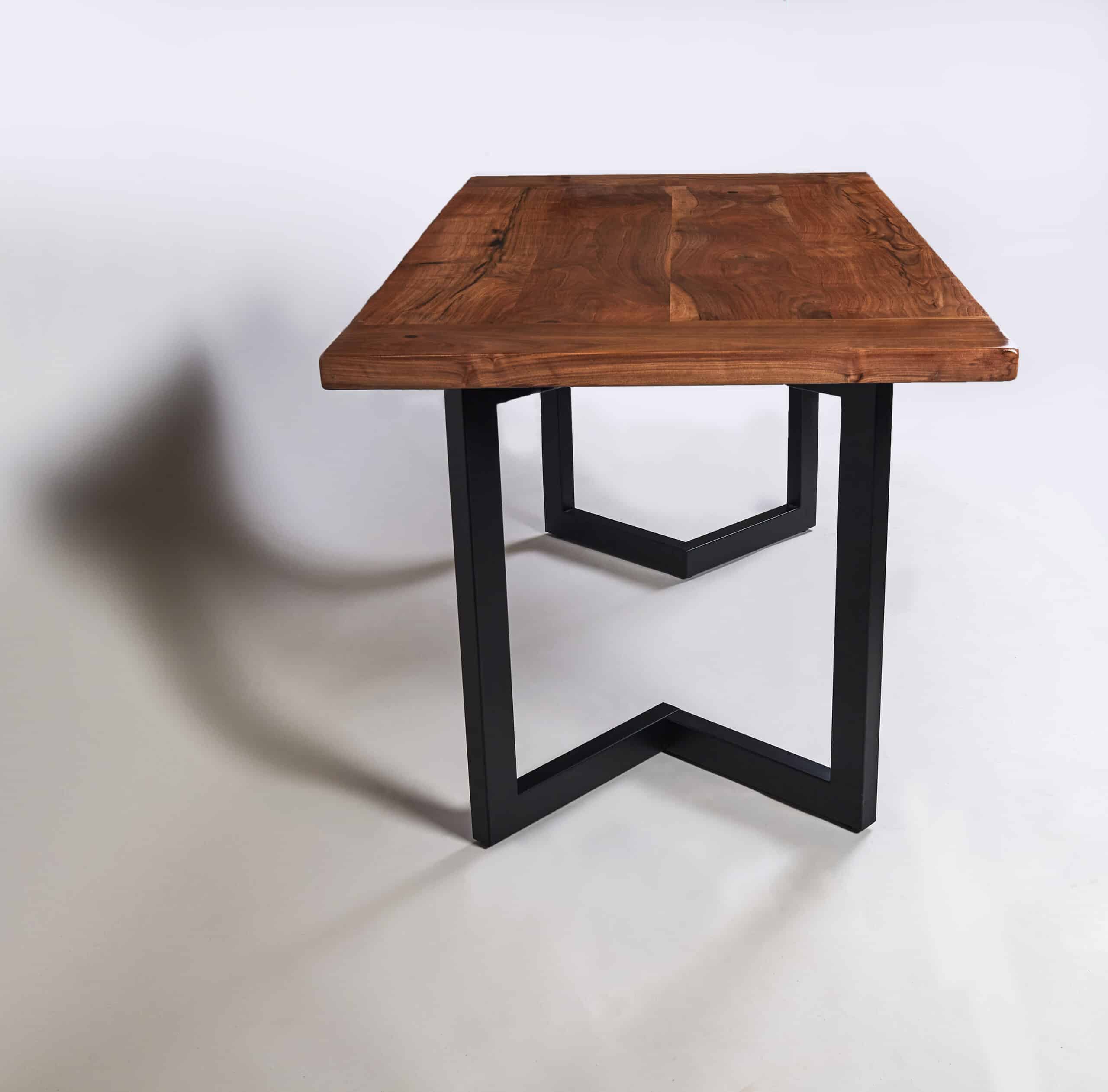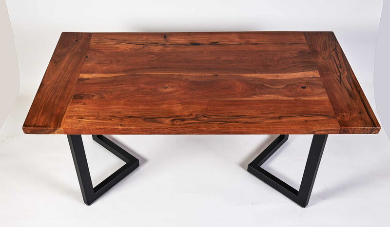 Black Walnut Doni Desk is made from a single piece of solid premium black walnut, this desk is sturdy and has natural wood grain. Available for sale this black walnut table – metal base is of a more modern design kicked up a notch. Made with uniquely figured solid black walnut slabs, the desk showcases why walnut is one of the most sought-after woods for furniture use.