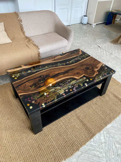 - Custom Just for You: Want a table that showcases your family heirlooms or your business’s flair? Whether it’s eyeglasses in epoxy for an optician’s office or a tech-themed table filled with gadgets, we’ve got you covered.