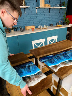 - Custom Just for You: Want a table that showcases your family heirlooms or your business’s flair? Whether it’s eyeglasses in epoxy for an optician’s office or a tech-themed table filled with gadgets, we’ve got you covered.