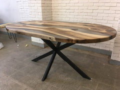 Elevate your dining space with our Canadian Maple Epoxy Oval Dining Table. Crafted to perfection, the table showcases the natural beauty of Canadian Maple wood adorned with a glossy epoxy finish. A seamless blend of elegance and durability, perfect for unforgettable gatherings and cherished moments.