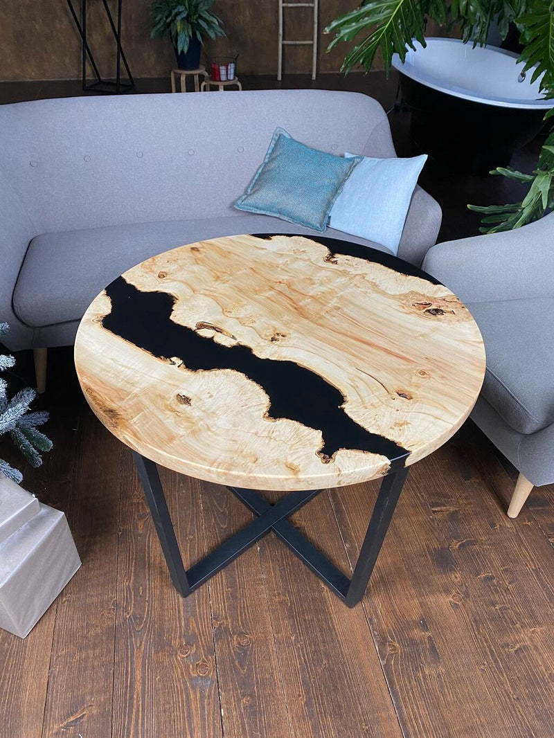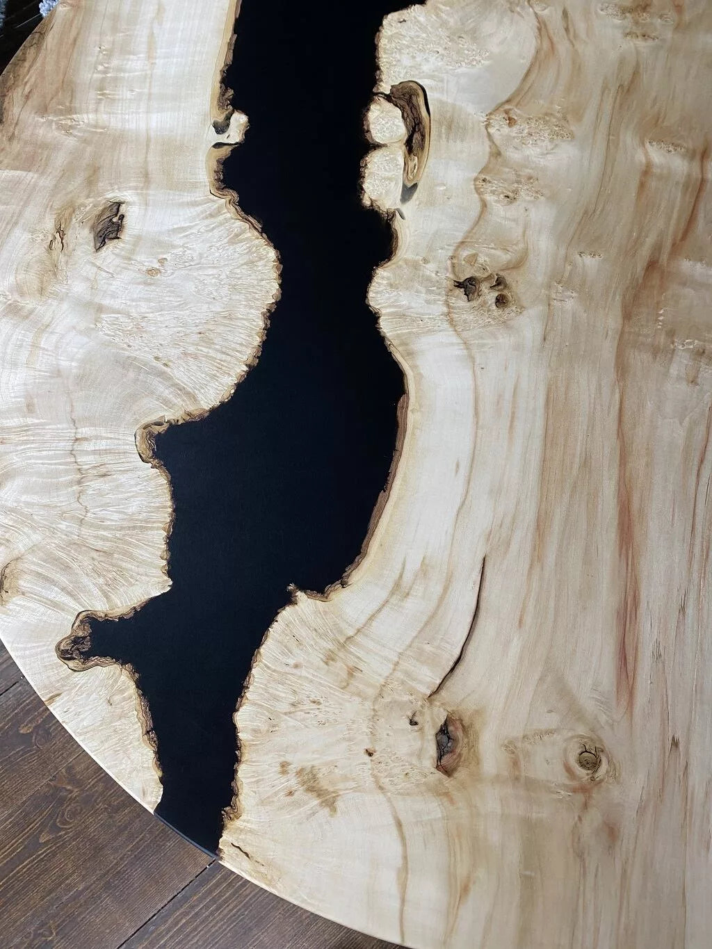 The Ebony Maple Fusion Coffee Table combines natural beauty with modern artistry. Crafted from premium maple wood, its warm, intricate grain contrasts elegantly with bold black epoxy accents, creating a striking fusion of textures. The round design adds a contemporary touch while maintaining a welcoming feel, perfect for any living space. Built with attention to detail and durability, this coffee table is not only functional but also a statement piece that enhances your home’s aesthetic.