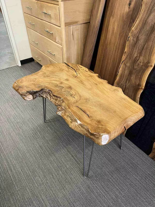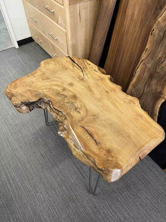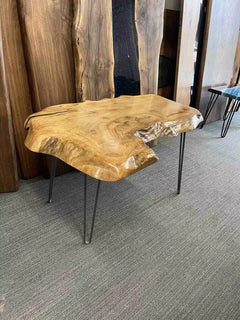 The Golden Flow Side Table is a stunning piece of functional art, crafted from live-edge walnut wood to showcase its natural beauty and unique grain patterns. The organic edges and swirling wood tones create a warm, earthy aesthetic that blends seamlessly with any decor style. Supported by sleek metal legs, this handcrafted table offers both durability and elegance. Perfect for use as a sofa side table or accent piece, the Golden Flow Side Table brings timeless sophistication and natural charm to your space.