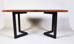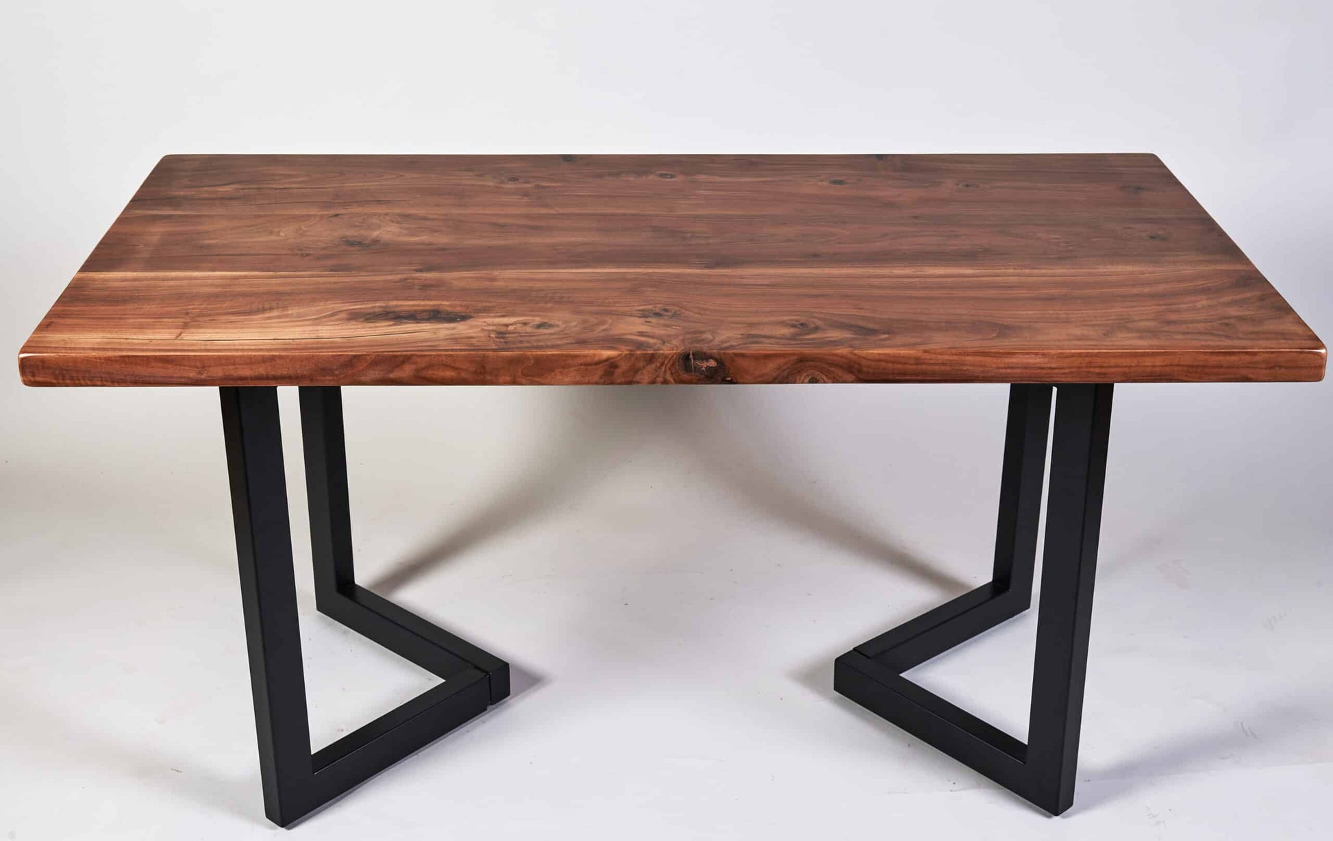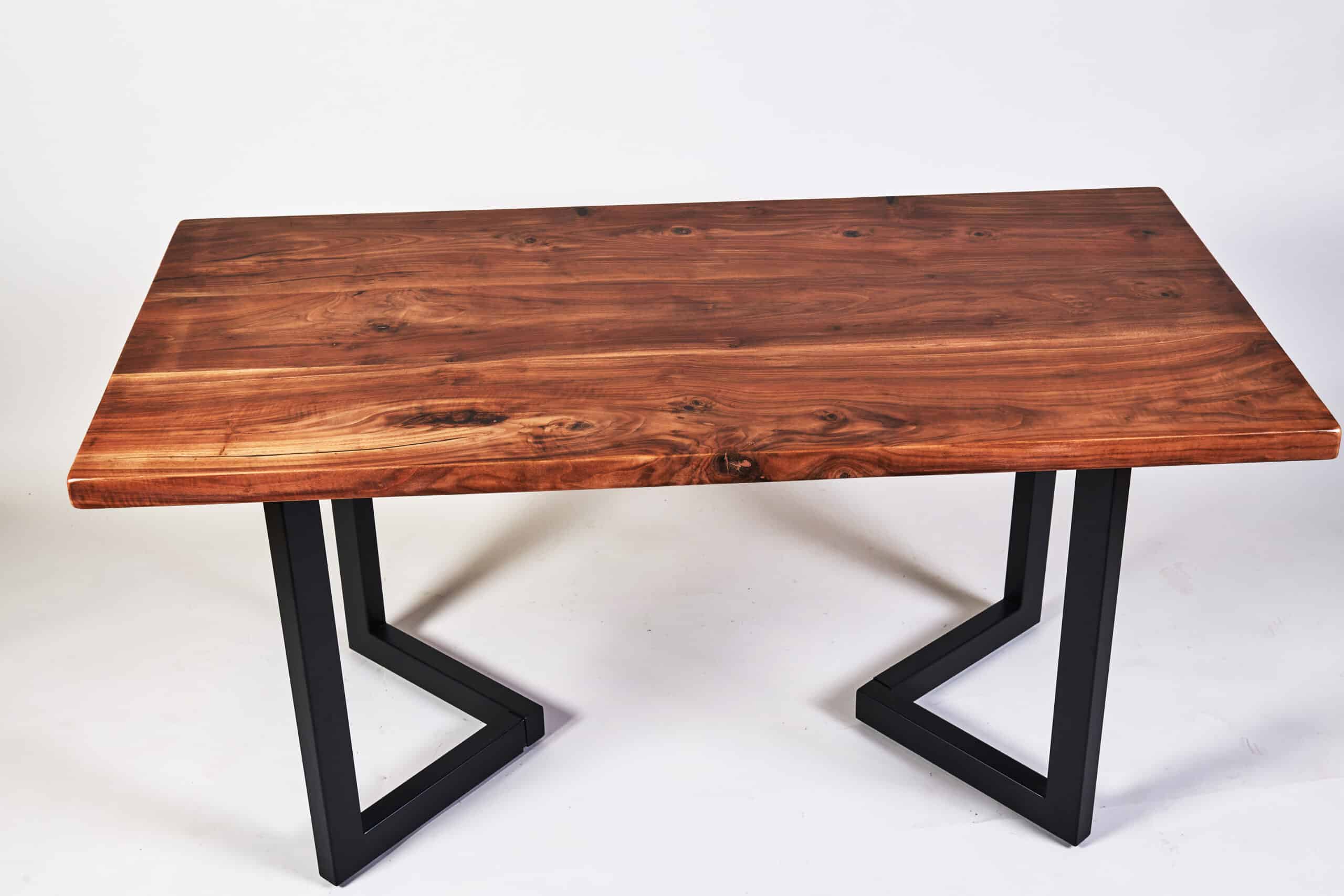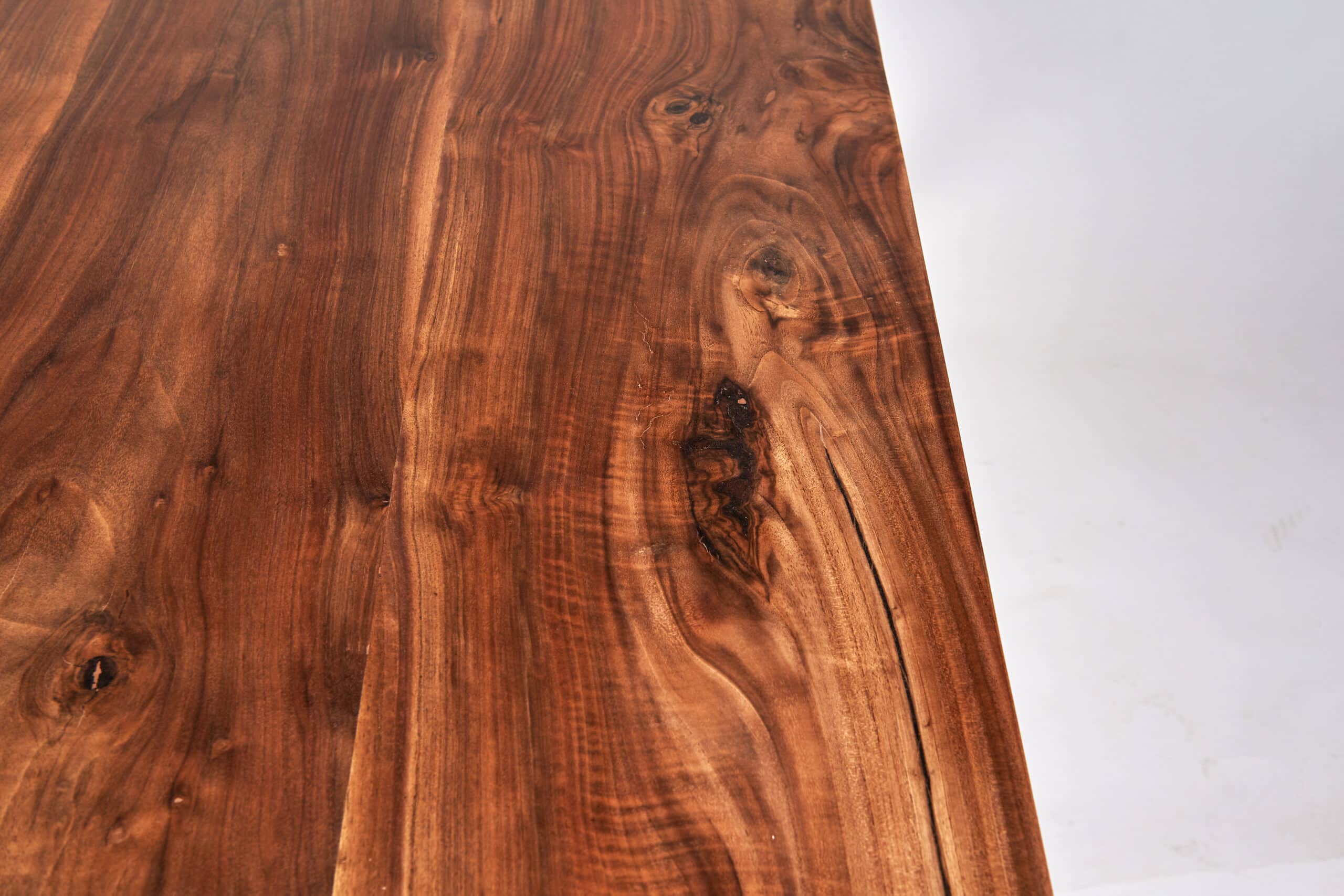Available for sale this black walnut table. Made with a uniquely figured solid black walnut slab, the desk showcases why walnut is one of the most sought-after woods for furniture use. Materials are available from Oak to Walnut to Cherry.