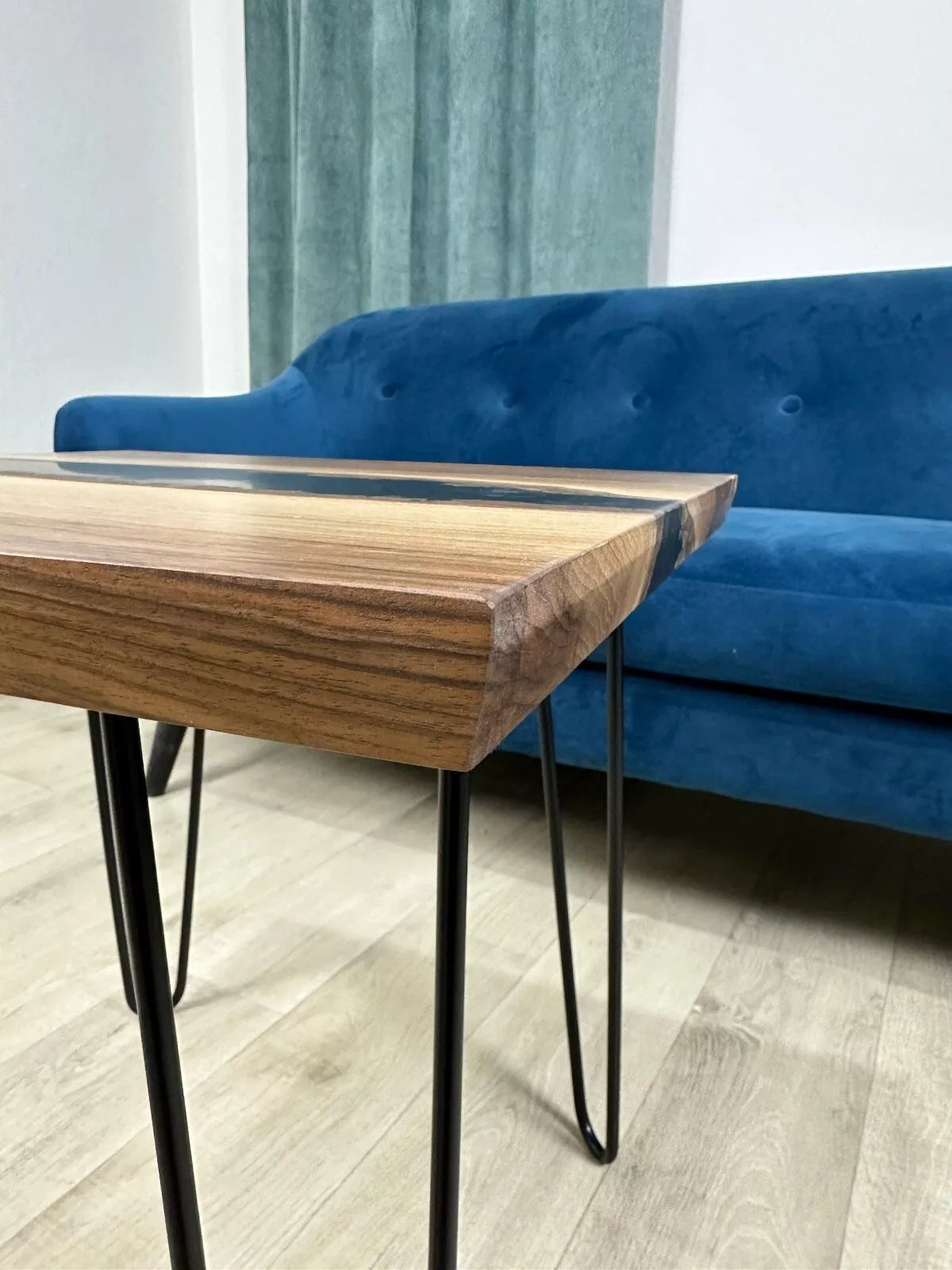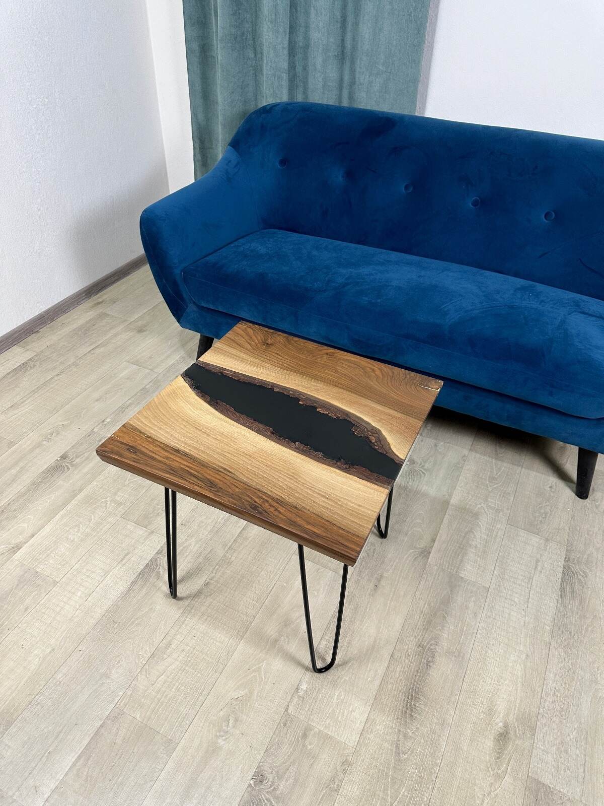 The Midnight Grove Coffee Table blends the natural beauty of walnut wood with a striking black epoxy finish, creating a bold, modern statement piece. Its square design and smooth, polished surface make it a versatile addition to any living room or lounge area. The dark tones of the wood are enhanced by the sleek black epoxy, offering a sophisticated contrast that complements a variety of interior styles. Durable and elegantly crafted, this coffee table is both functional and an eye-catching focal point in your home.